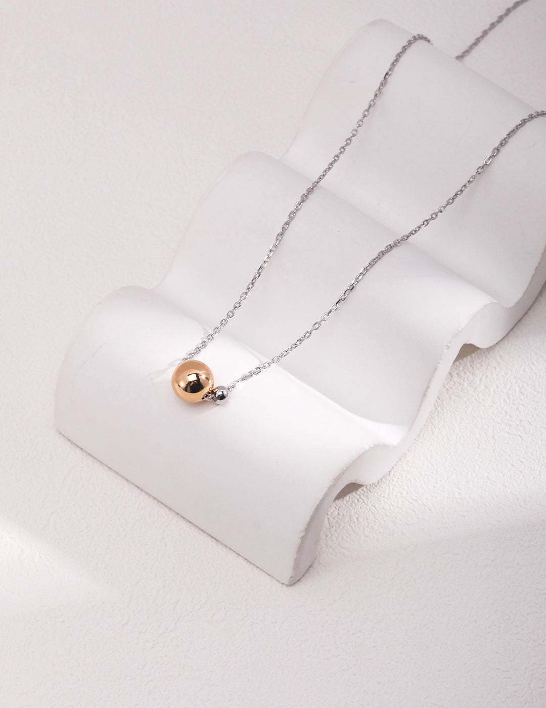 Introducing the Timeless Golden Orb Necklace, a piece that effortlessly captures the essence of elegance and sophistication. Crafted meticulously from premium S925 silver, this necklace showcases a radiant gold ball pendant that serves as its centerpiece, shimmering with every movement and catching the light in the most enchanting way. The pendant, measuring approximately 9mm, dangles gracefully from a chain that spans about 40cm in length, with an additional 6cm extension chain to ensure a perfect fit for every wearer. The necklace's lustrous white gold hue complements the golden orb, creating a harmonious blend of colors that exudes a timeless charm. Whether worn for a special occasion or as a daily statement piece, the Timeless Golden Orb Necklace promises to add a touch of Parisian elegance to any ensemble.