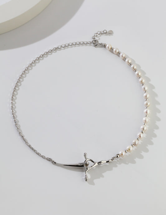 Ginkgo Elegance Sterling Silver Pearl Necklace