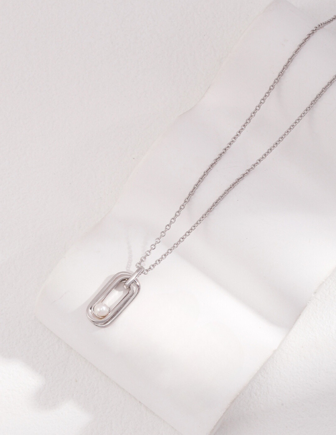 Experience the allure of our "Timeless Elegance Pearl Pendant Necklace." This piece combines simplicity with sophistication by featuring a rectangular pendant adorned with a lustrous pearl. The design takes a minimalist elliptical line shape and adds additional layers for depth and dimension. The vintage-inspired twisted Mobius structure infuses a delightful touch of design flair. Whether you're dressing up for a special occasion or seeking to enhance your daily ensemble, this necklace captures the essence of timeless elegance with a contemporary twist, making it a versatile and cherished addition to your jewelry collection.